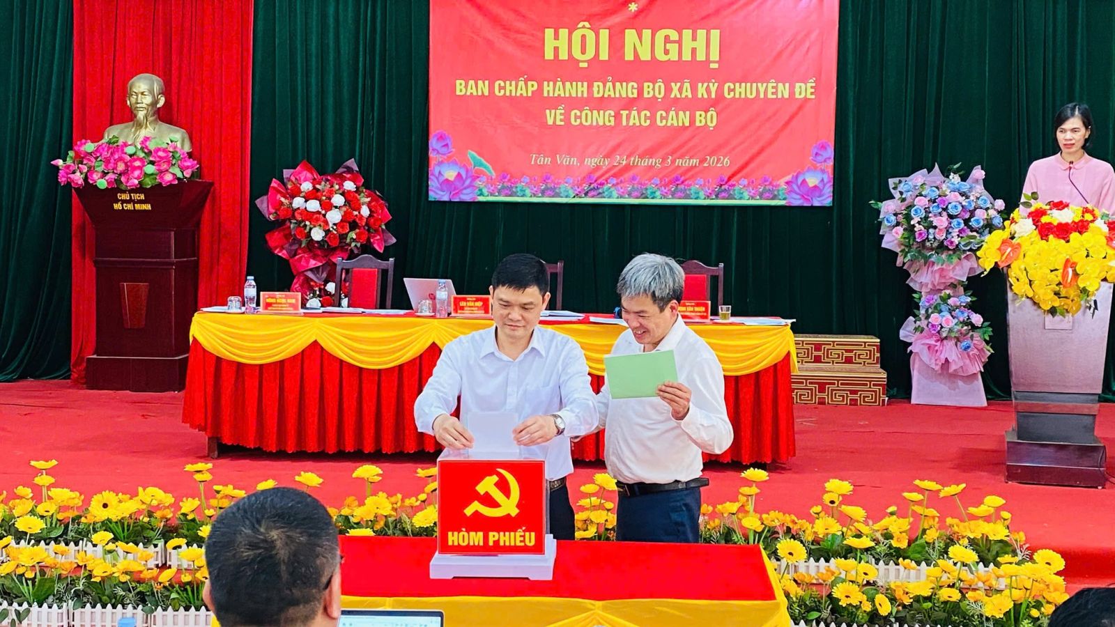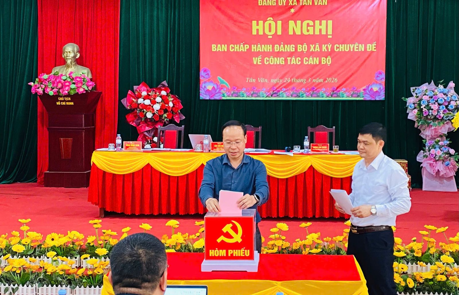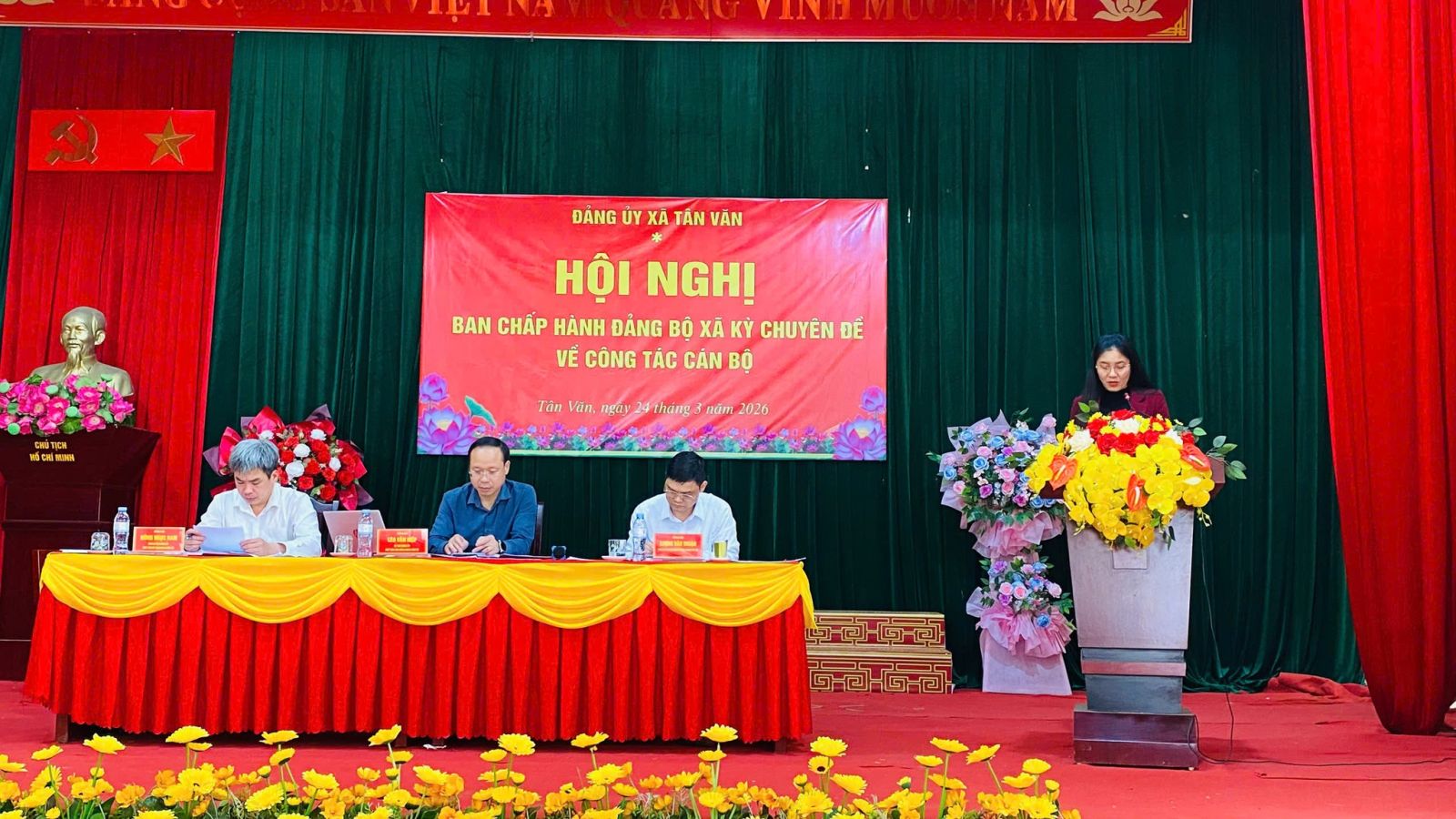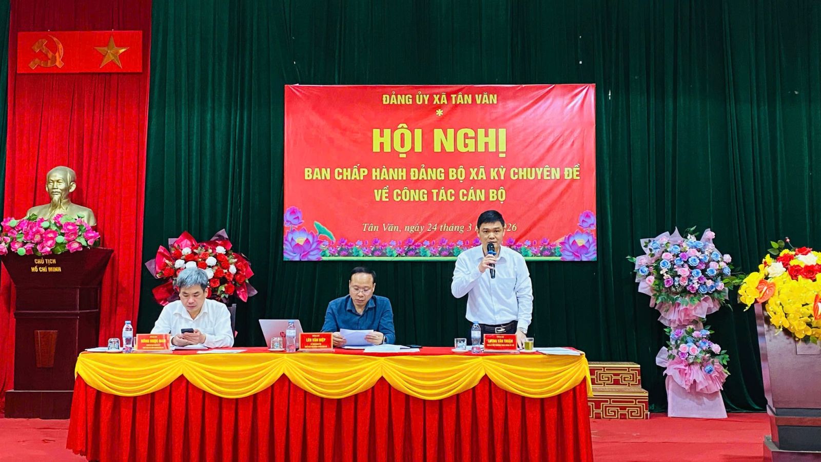 Chiều ngày 24/3/2026, Ban Chấp hành Đảng bộ xã Tân Văn tổ chức Hội nghị kỳ chuyên đề về công tác cán bộ. Dự và chỉ đạo Hội nghị có đồng chí Lèo Văn Hiệp, Bí thư Đảng ủy, Chủ tịch Hội đồng nhân dân xã; tham dự có các đồng chí Ủy viên Ban Chấp hành Đảng bộ, Ủy viên Ban Thường vụ Đảng ủy xã.