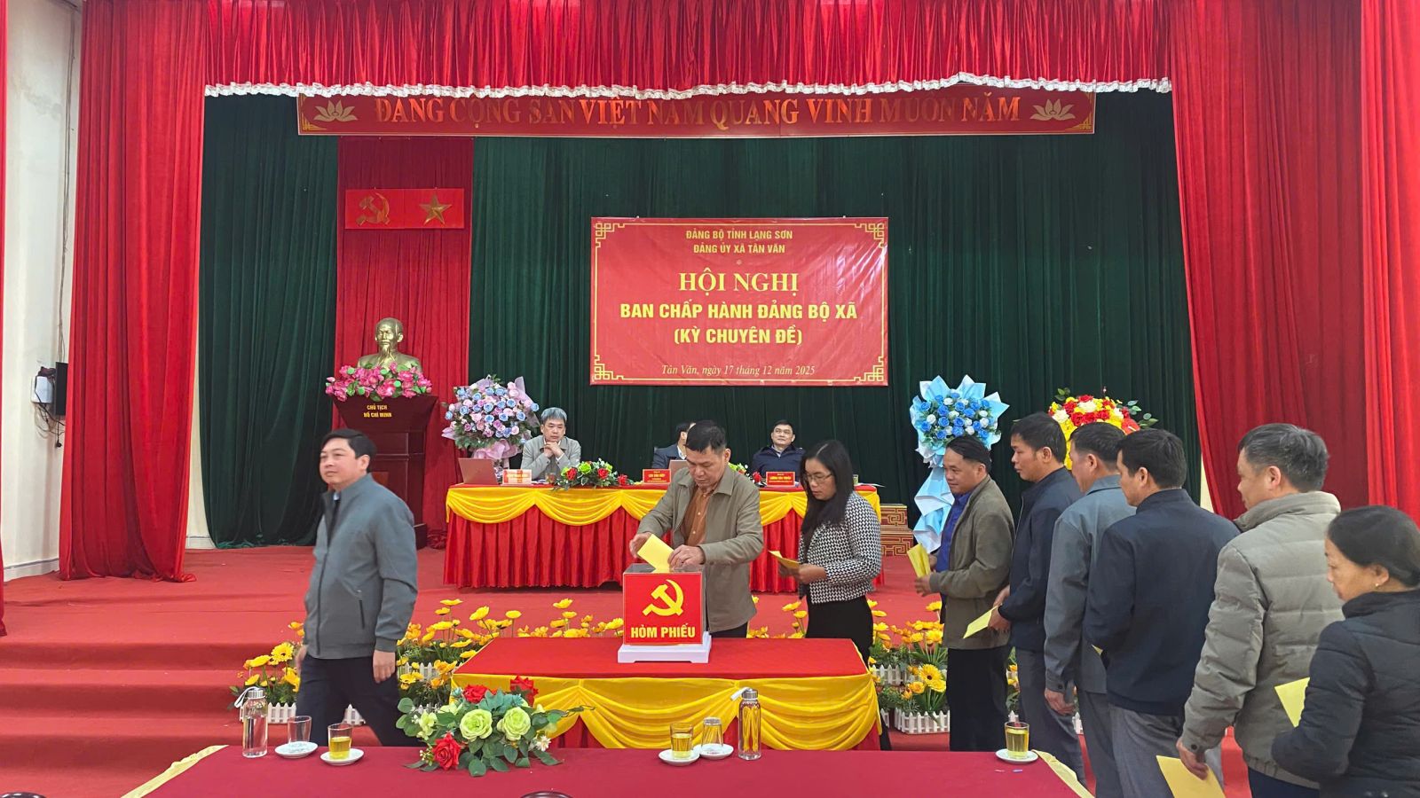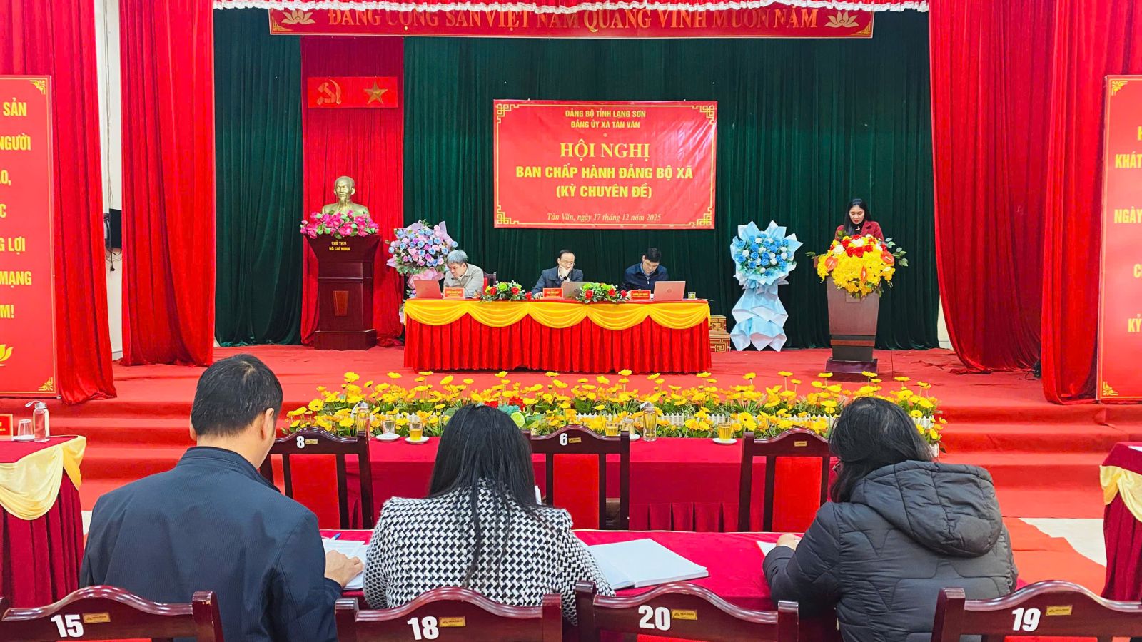 Đồng thời tiến hành kiểm điểm, đánh giá và xếp loại chất lượng Đảng bộ xã Tân Văn năm 2025, tập trung đánh giá kết quả lãnh đạo thực hiện nhiệm vụ chính trị, công tác xây dựng Đảng, chỉ rõ hạn chế và đề ra giải pháp khắc phục trong thời gian tới. Hội nghị đã thống nhất đề xuất mức xếp loại Đảng bộ xã năm 2025 là “Hoàn thành tốt nhiệm vụ”.