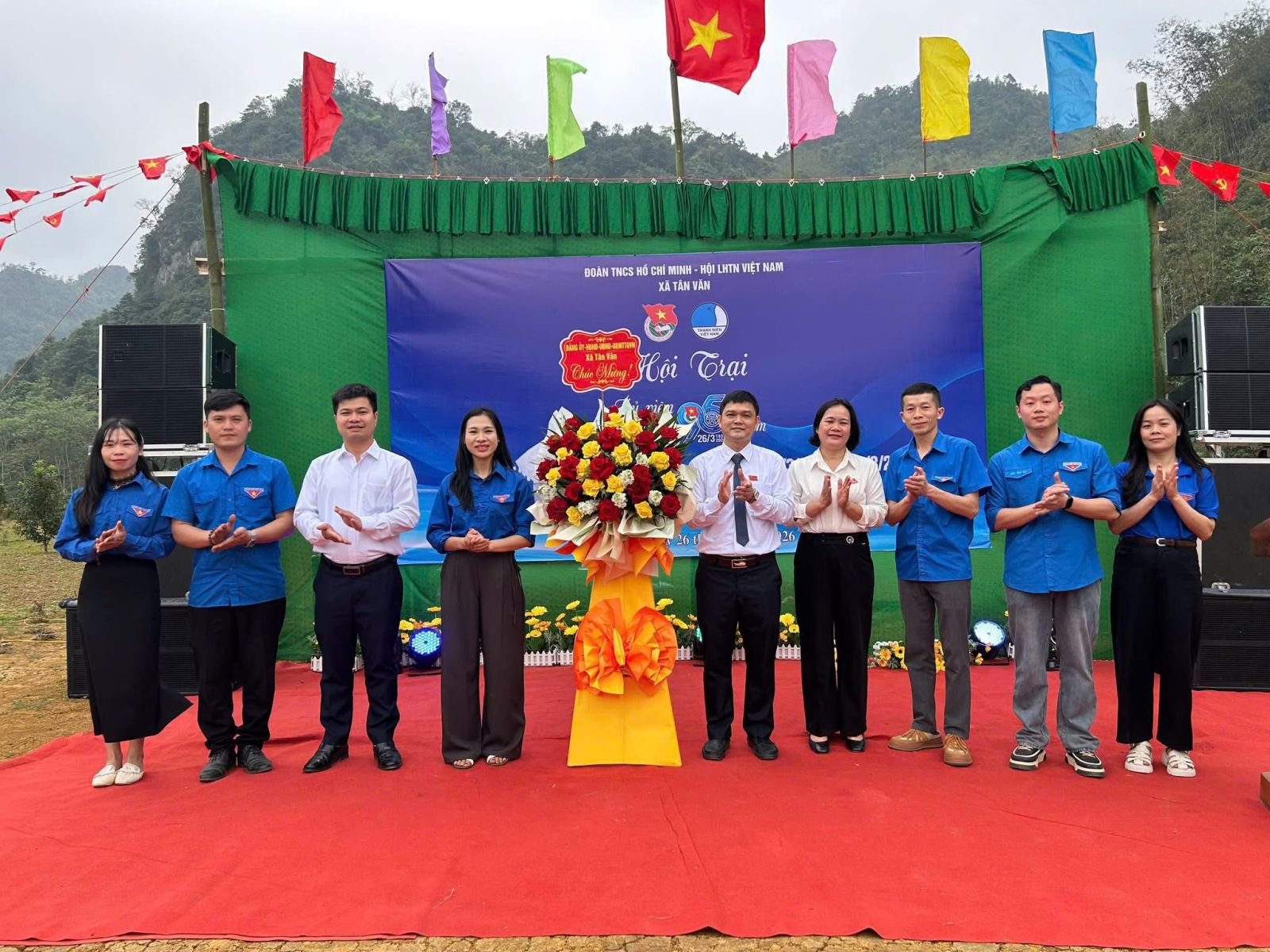 Lãnh đạo Đảng ủy, UBND, Ủy ban MTTQ Việt Nam xã tặng hoa chúc mừng Đoàn Thanh niên xã nhân dịp tổ chức Hội trại kỷ niệm Ngày thành lập Đoàn TNCS Hồ Chí Minh (26/3)