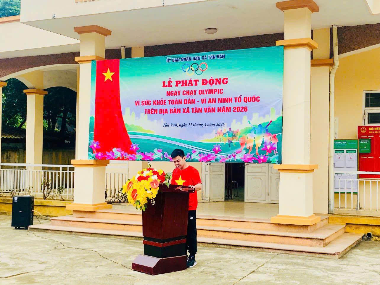 Thực hiện kế hoạch của UBND xã, sáng ngày 22/3/2026, xã Tân Văn đã tổ chức “Ngày chạy Olympic vì sức khỏe toàn dân – Vì an ninh Tổ quốc” với sự tham gia của cán bộ, đảng viên, lực lượng vũ trang, giáo viên, học sinh và Nhân dân trên địa bàn.